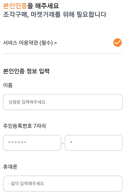 트레져러 본인인증 (조각구매, 마켓거래 용도)