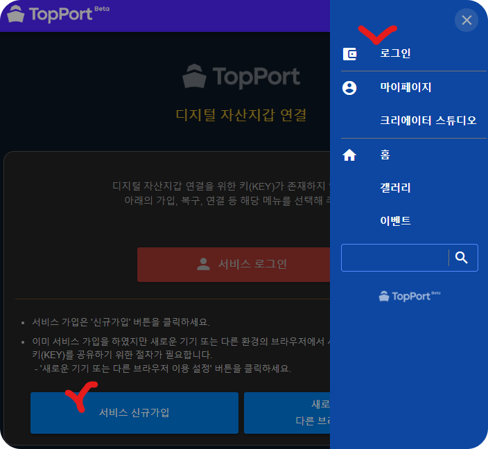 - 탑포트 서비스 신규가입