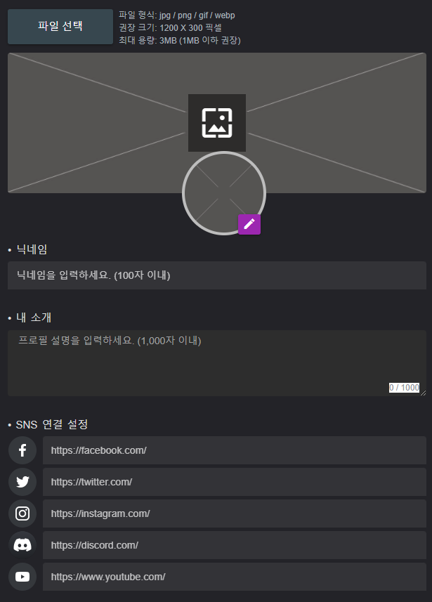 - 페이스북, 트위터, 인스타그램, 디스코드, 유튜브