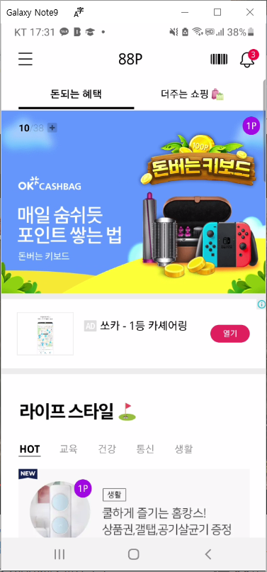 자 그럼 지금까지 오케이캐쉬백 (OK CASHBAG) 돈되는 키보드 이벤트에 참여하여 오케이캐쉬백 포인트 적립 및 경품 행사에 참여하는 내용을 전달드렸습니다. 경품 행사는 닌텐도 스위치 그리고 다이슨 에어 랩 등의 제품을 경품으로 타보실 수 있는 기회이니 도전하실 분들은 15일간 돈 되는 키보드를 사용해보시기 바랍니다.