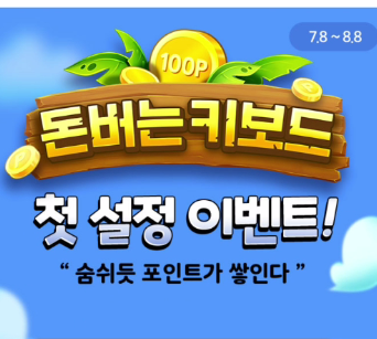 돈 버는 키보드 첫 설정 이벤트라고 보이는데요. 숨 쉬듯 포인트가 쌓인다?라는 이상한 말을 하고 있네요.