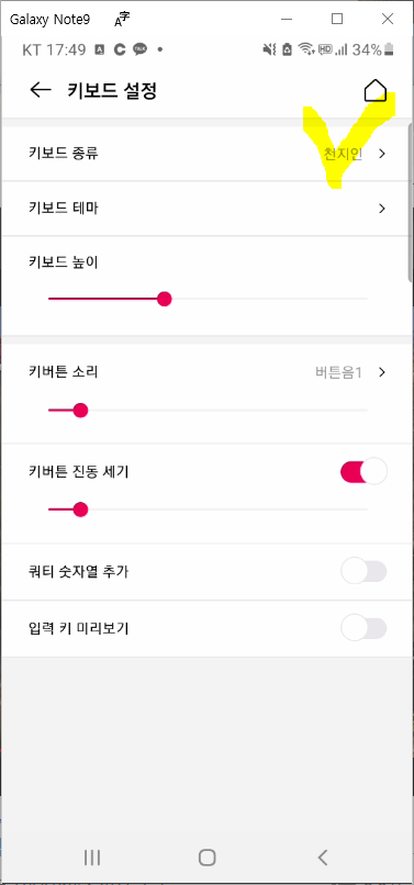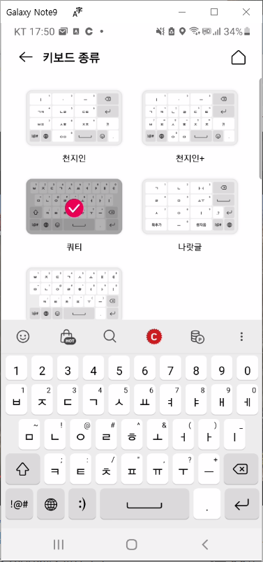 - 돈 버는 키보드 종류가 천지인이 기본으로 되어있는데 저는 천지인 키보드는 불편해서 사용을 못하기 때문에 제가 선호하는 쿼티 자판으로 변경하도록 하겠습니다.
