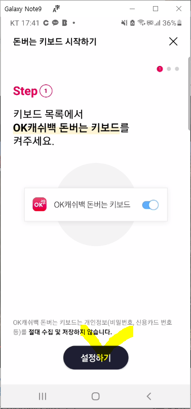 이로써 오케이캐시백 돈버는 키보드의 설정이 모두 완료되었습니다.