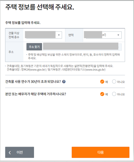 다음은 주택 정보를 선택해주세요. 화면입니다.
