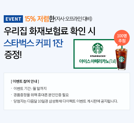 보험료 산정 후 우리 집 화재보험료 확인 시 이벤트도 잊지 말고 참여하세요.