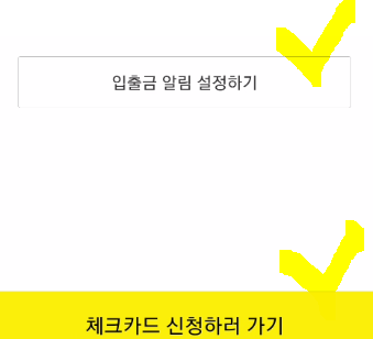 카카오 뱅크 입출금계좌 개설 완료 후에 입출금 알림 서비스 설정과 더불어 체크카드 신청하는 것 또한 가능합니다.