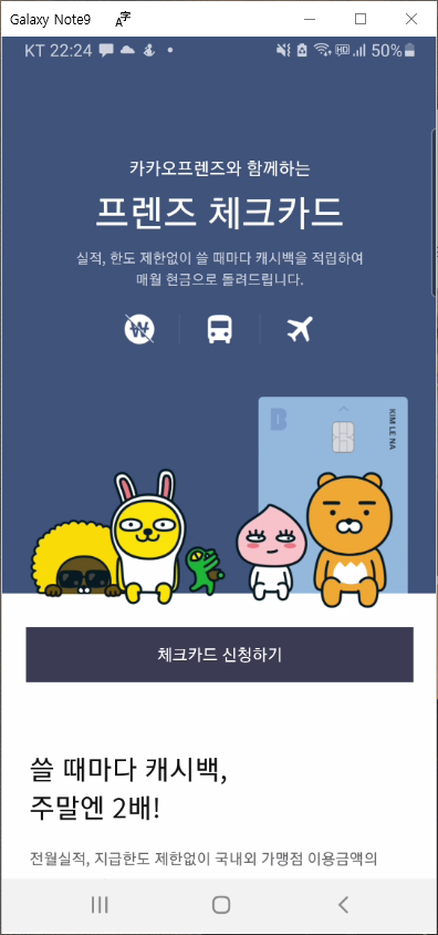 - 디자인은 내 맘대로 혜택은 누구에게나 --> 카카오 프렌즈 캐릭터 디자인의 체크카드 제공