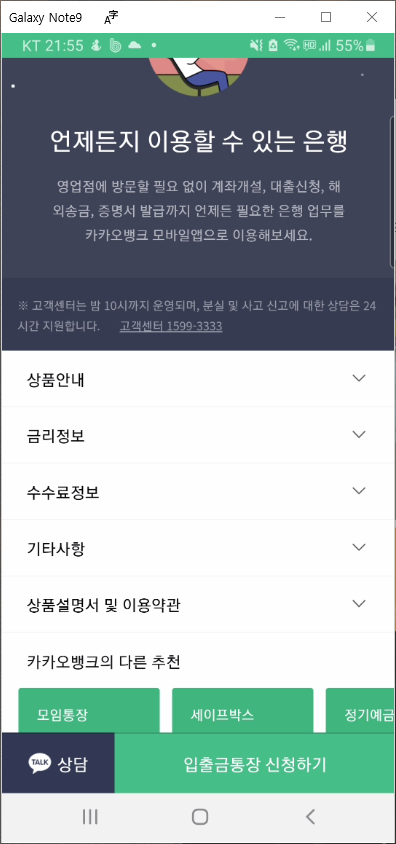 ※ 본 글의 통장 개설관련 내용은 참조하시되, 카뱅 입출금 통장 상품 안내, 금리정보, 수수료 정보 등의 은행 고시 내용은 카카오 뱅크 모바일 앱을 통해 확인하시는 것이 가장 최신이고 업데이트된 내용을 확인하시는 방법입니다.