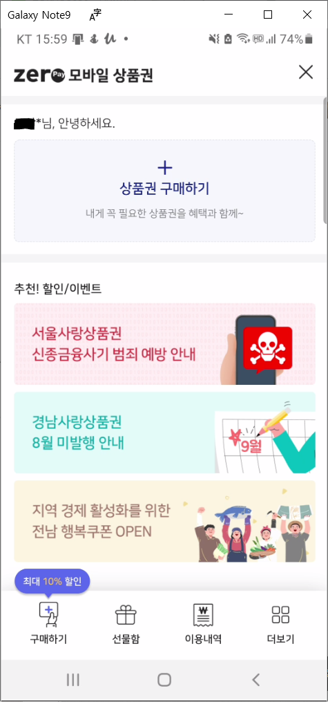 모바일 온누리 상품권 실제 구매 하기