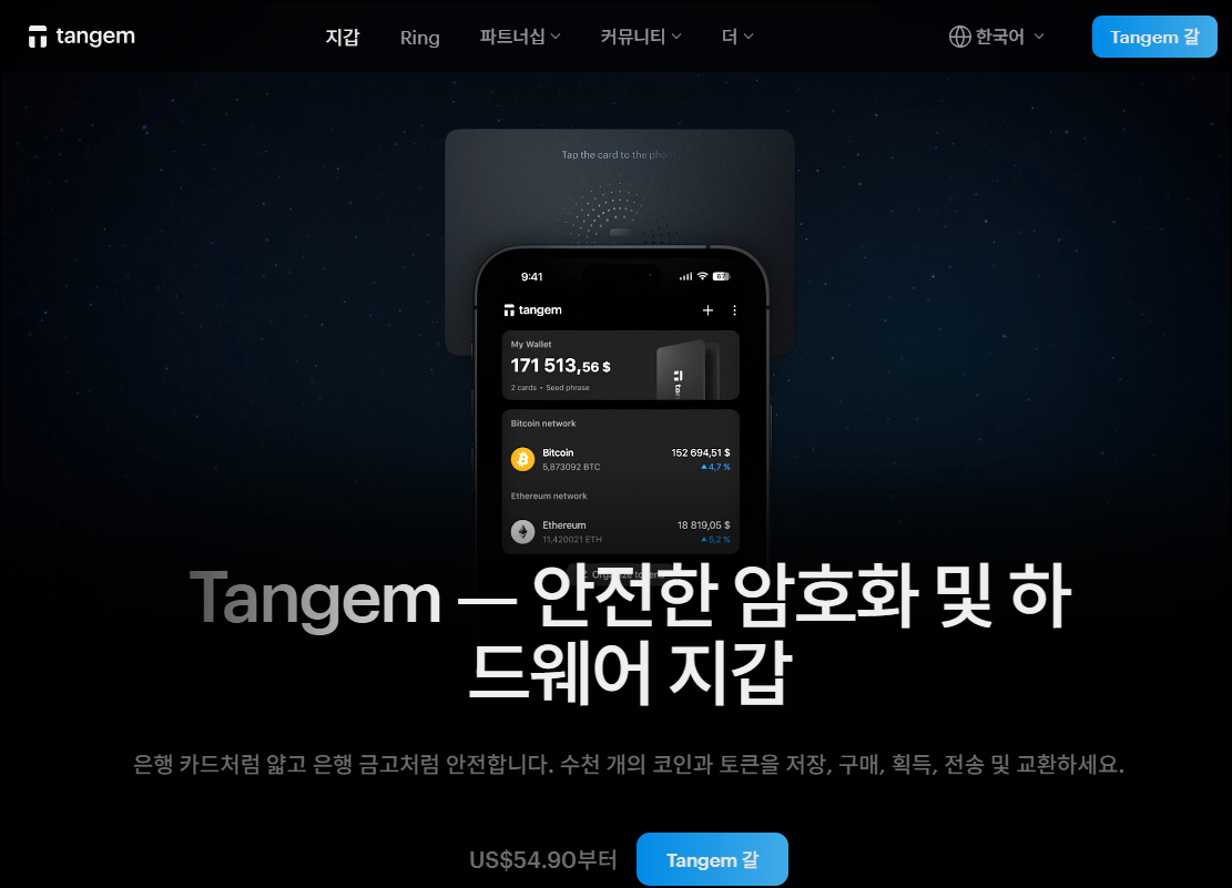 | Tangem Wallet | NFC 카드형, 스마트폰 간편 연동, 복구 카드 제공 | 약 7~14만원 |