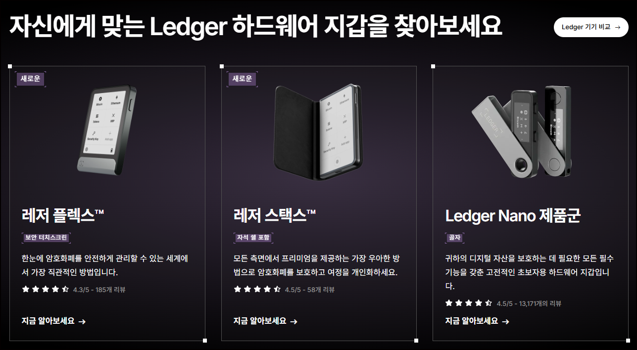 - Ledger – 글로벌 공식 홈페이지 구매 및 국내 인증 대리점에서 구매 가능