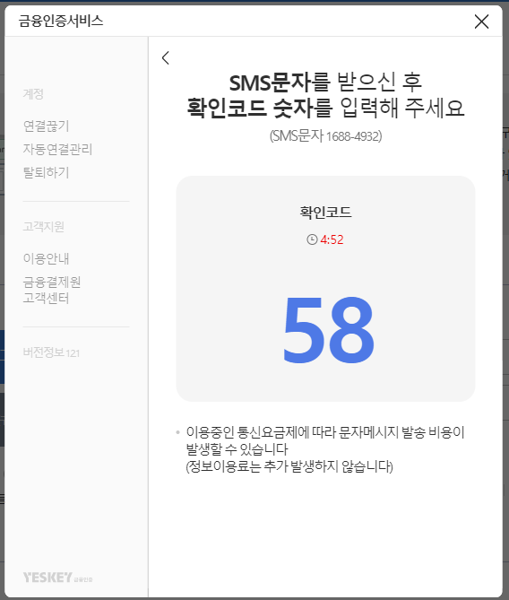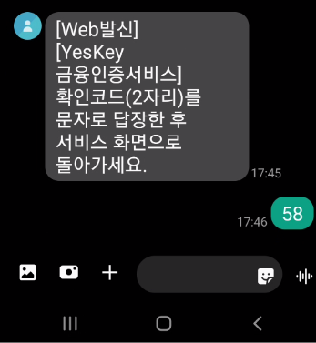 핸드폰으로 수신된 문자에 화면에서 확인하신 확인코드 (2자리 숫자)를 입력하고 답장을 하면 됩니다.