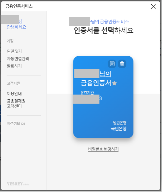 오늘은 사용하던 KB 국민은행 구 공인인증서가 만료되어 재발급을 하려고 하는데 과거의 공인인증서보다는 금융인증서가 PC가 아닌 온라인에 인증서가 보관되고 6자리 숫자로 간단하게 인증이