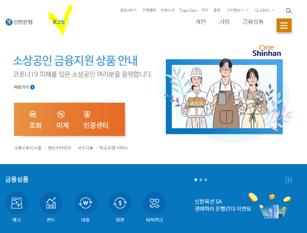 신한은행 금융인증서 로그인 시작하는 방법