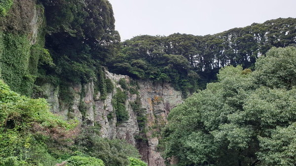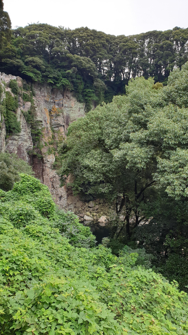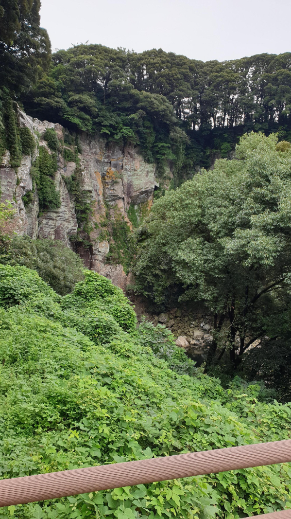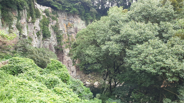 엉또폭포 전망대에 올라 엉또폭포를 바라보았는데요. 폭포물이 형성되지 않아 볼 수 있는 것은 폭포의 절벽과 절벽 위에 우거진 수풀 뿐이라 아쉽습니다.