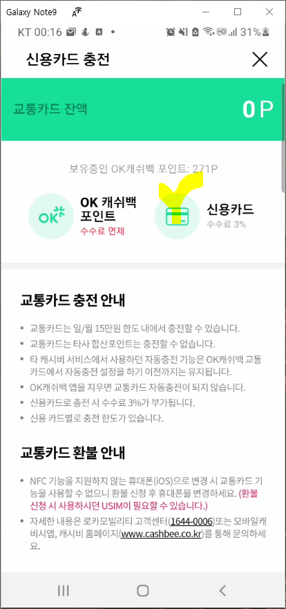 오케이캐쉬백 교통카드 충전하기 (오케이캐쉬백 포인트 vs 신용카드 사용)