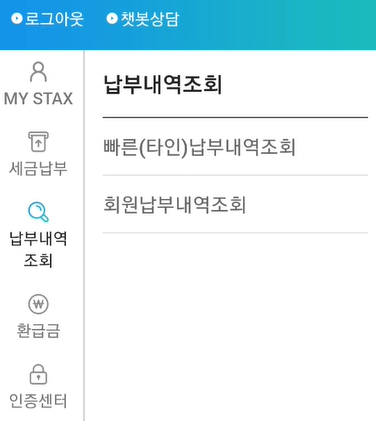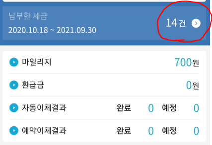 에스택스 STAX 메인화면에서도 "납부한 세금"의 건수가 조회되며 해당 건수를 클릭하면 바로 회원납부 내역 조회 화면으로 이동됩니다.