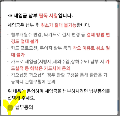 - 세입금 납부 필독사항 --> 납부 동의 체크