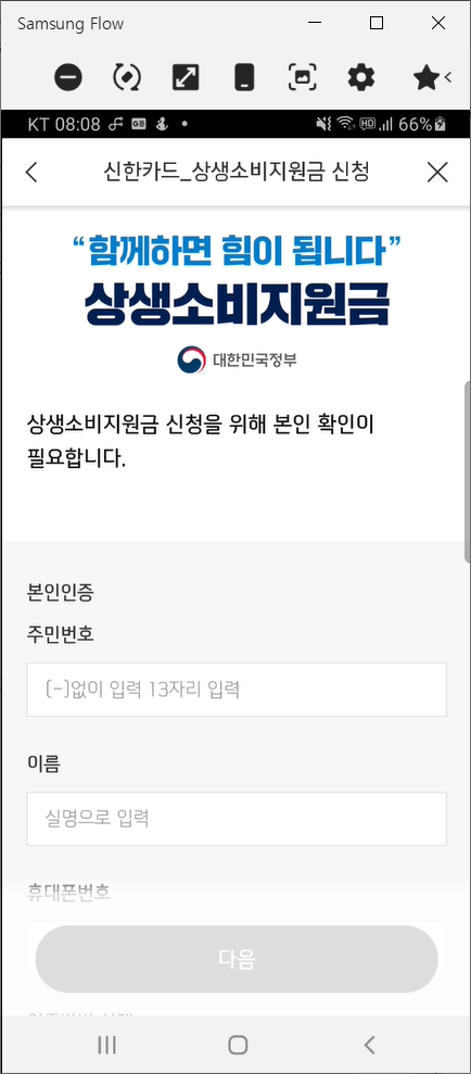 신한카드 상생소비지원금 이용안내 : 신청하기