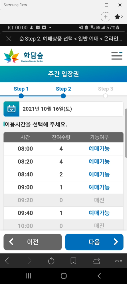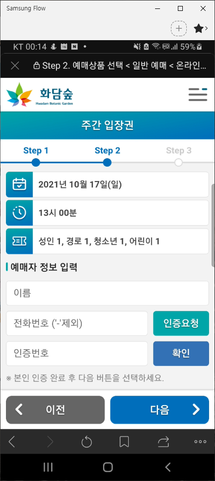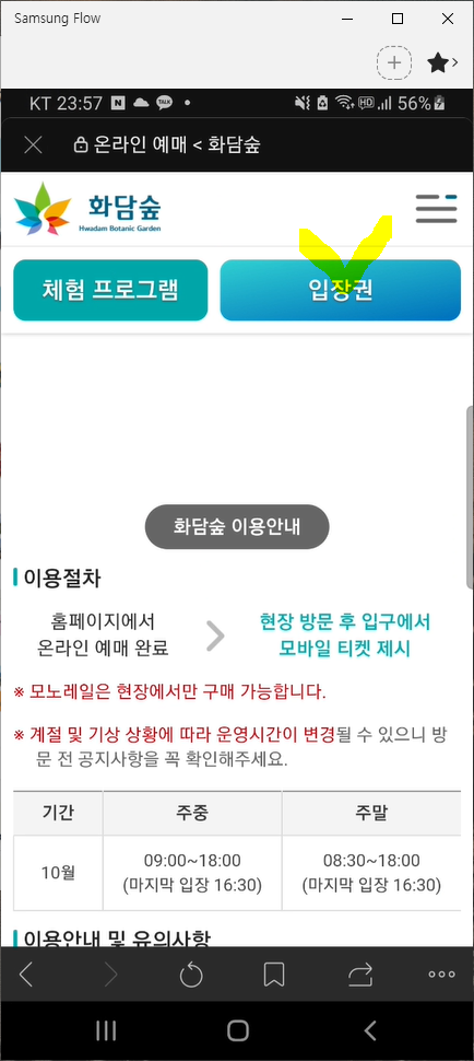곤지암 화담숲 홈페이지에서 온라인 예매를 클릭하고 다음의 예약 절차에 따라 진행합니다.