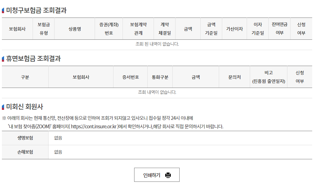 - 휴면보험금 조회 결과