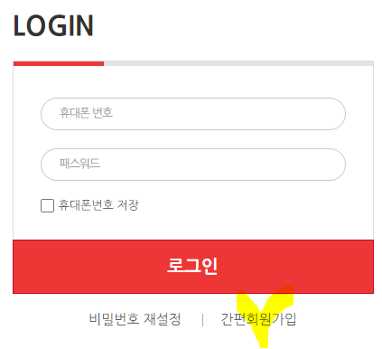 다음과 같이 로그인 화면이 나타나면 간편회원가입을 눌러서 회원가입을 진행합니다. 다음과 같은 회원가입 절차에 따라서 회원가입을 완료하고 로그인하면 됩니다.