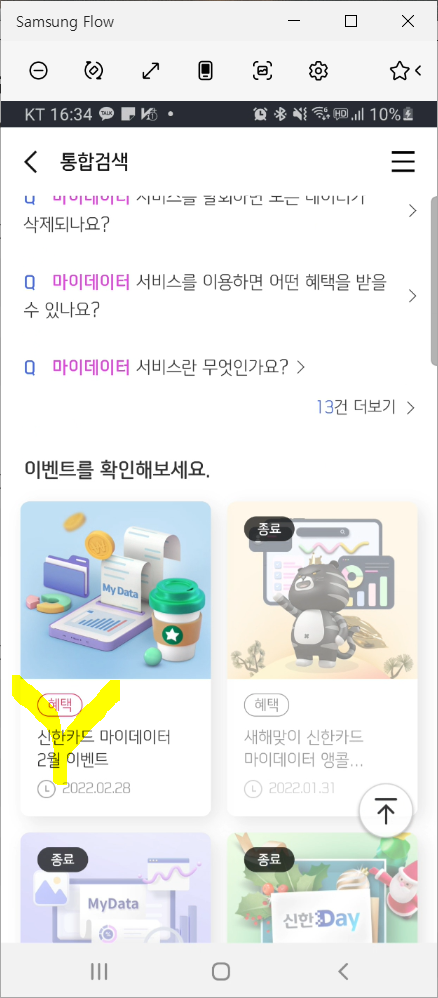 ※ 이벤트 조회가 어려우면 통합검색에서 '마이 데이터'를 검색하면 '신한카드 마이 데이터 이벤트'를 찾으실 수 있습니다.