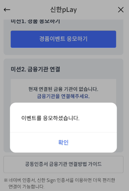 신한카드 마이데이터 이벤트 미션 1. 경품 응모하기