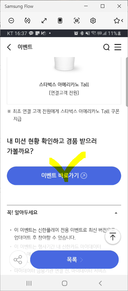 먼저 첫 번째 미션으로 경품 응모하기 버튼이 보이면 눌러주세요.