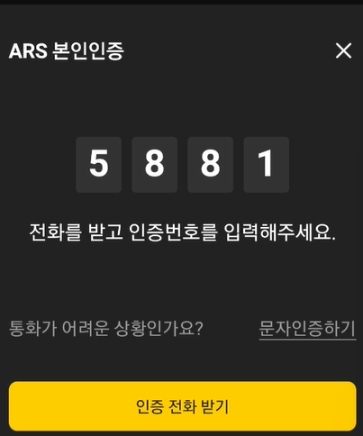 ARS 본인인증 화면에 보이는 4자리 숫자를 전화를 받고 인증번호를 입력해주시는 단계가 필요하게 됩니다. 전화가 걸려오면 숫자를 입력한 다음 다시 돌아와 '인증 확인' 버튼을 눌러주세요.