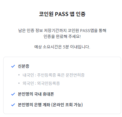- 코인원 PASS 앱 인증 : 모바일 앱 설치 필요!