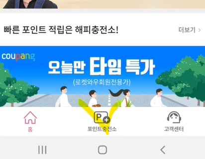 해피 스크린 최초 서비스 이용 시에는 사용 가능 포인트가 거의 없을 것이기 때문에 앱 화면 하단에 '포인트 충전소'를 클릭해보시기 바랍니다.