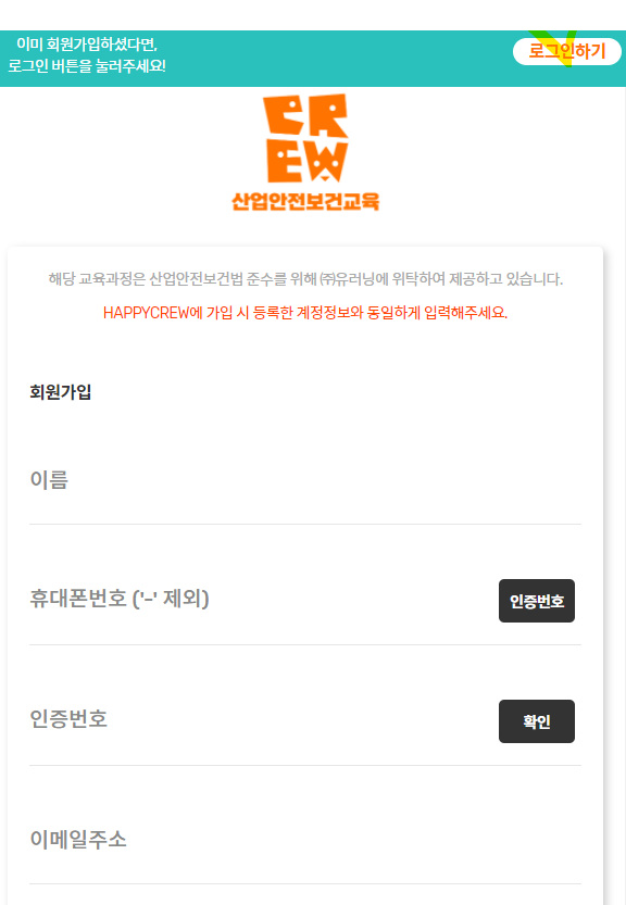 해피 크루 안전교육 이수 홈페이지 정보 Happy Crew