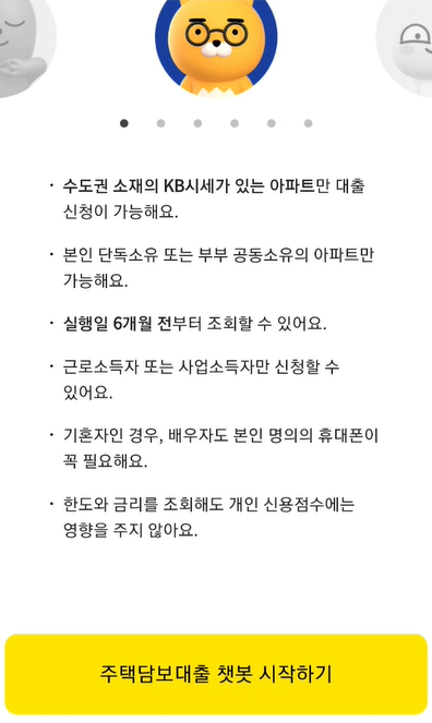 카카오 뱅크를 통해 주택담보대출을 받으려고 하시는 분들은 챗봇을 시작하기 전에 아래 내용을 먼저 읽어보시고 진행하실 것을 추천드립니다.